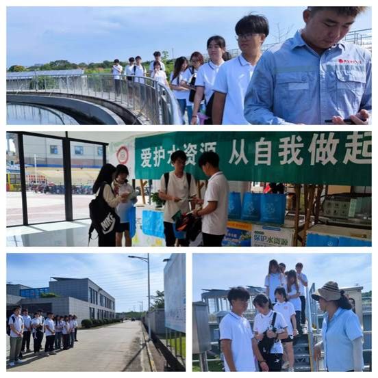 同学们在讲解员的带领下,首先观看了全厂概貌展示板,听讲解员讲解该厂的概貌、区域划分及远景规划等。随后跟随讲解员到污水处理区,现场观看污水处理的设备、工艺及流程。