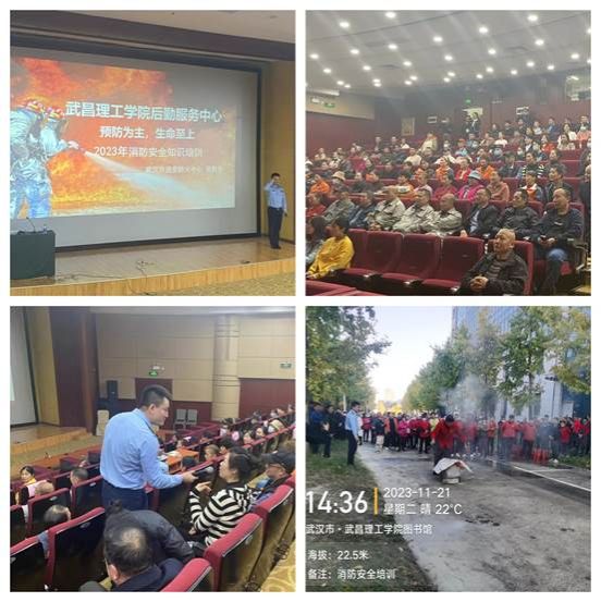 11月消防安全月,为进一步增强后勤员工的安全防范意识,夯实消防安全知识,提高预防火灾及火灾事故的应急处置能力。2023年11月20、21日13:30,后勤服务中心联合保卫处分批次在图书馆二楼学术厅及馆外举行了消防安全培训。后勤各部门及联营档口门面共300余人参加。