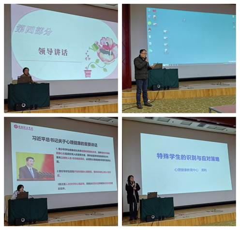 学工处心理健康教育中心的李方老师,就常见心理问题识别及危机干预的流程并结合实际案例,给大家上了一堂生动的心理知识课。会议最后由学院党委副书记林娟副校长,结合当下国际国内形势,目前学生受教育的大环境下,我们更加需要加强对心理健康教育工作的关注和重视及各项举措都能落到实处。
