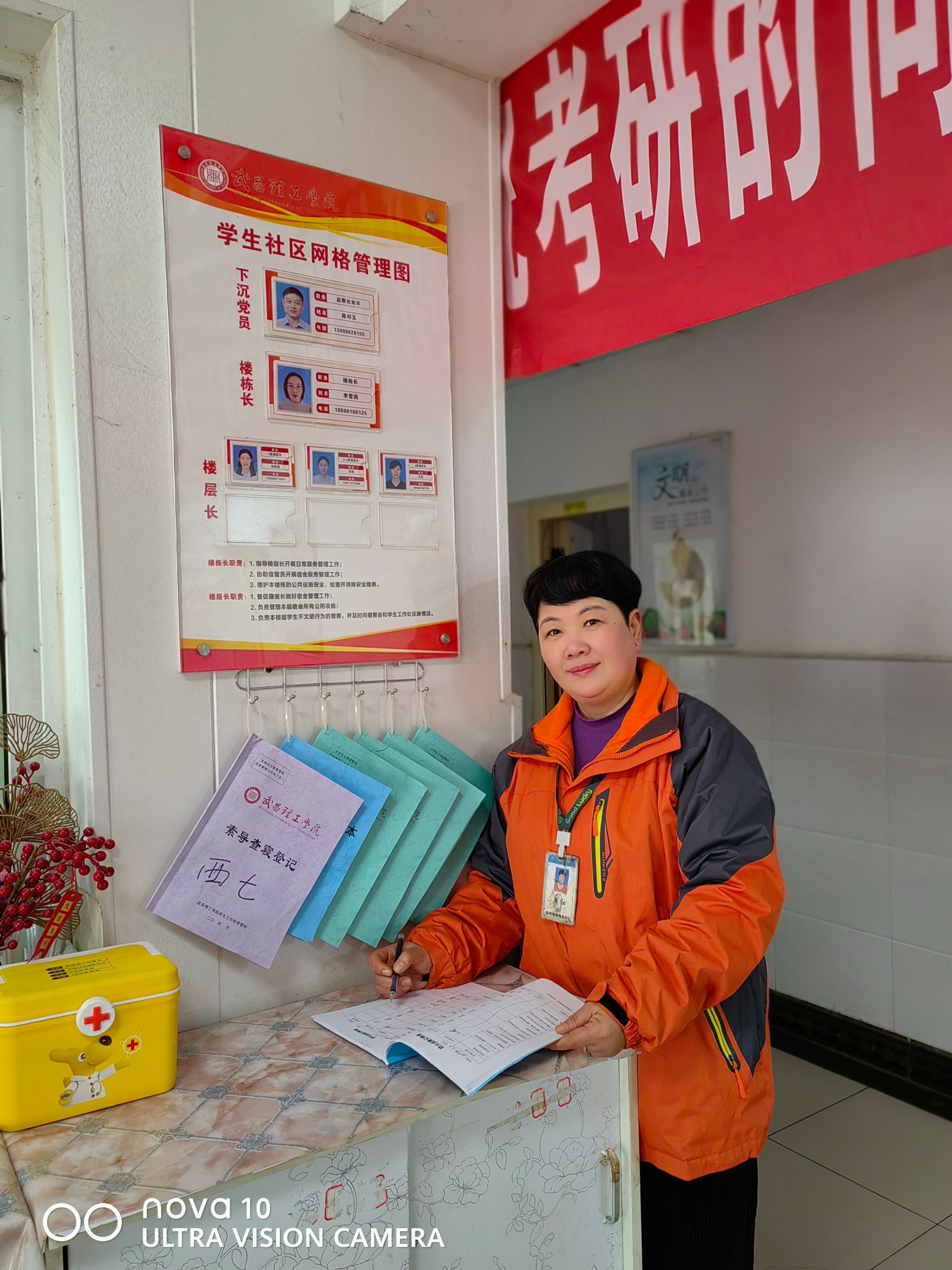沈玲:她是同学口中的“沈妈妈”、“知心阿姨”,她把学生当自己的孩子,无微不至的关怀,体贴周到的服务,“有困难找阿姨”是同学们的口头禅,她让远离家人的孩子感受到了家的温暖,她用爱和陪伴守护学生的花样年华。