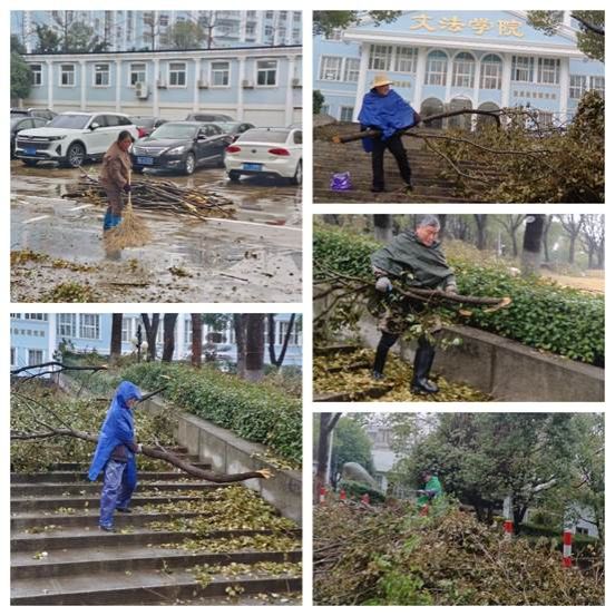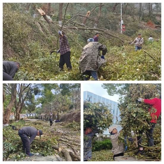 在大家的共同努力下,清理工作进展迅速,短短两天时间让校园内的道路恢复畅通,树木也重新展现出整齐的姿态。此次清理工作不仅为开学后的师生们创造了一个整洁、安全的校园环境,也展现了后勤人员的团结协作和吃苦耐劳的精神风貌。