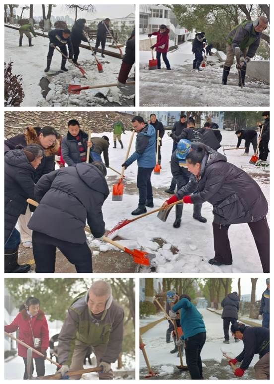 开学在即,后勤领导紧急召集楼管部、环艺部员工提前到岗,各部门通力合作开始一场破冰铲雪攻坚战。校园中最难清除冰冻雪的位置有校园主干道,尤其是上下高坡的道路,行政楼、学生宿舍、食堂台阶等地方,冰层又厚又硬,一不小心就会摔倒,大家小心翼翼地走在冰面上,用凿子、耙子、洋镐、铁锹等工具,采用各种各样的方式方法进行除冰铲雪。他们不畏严寒,,干劲十足,手冻僵了就双手搓热几分钟后接着干;他们不辞辛劳,额头的汗水与寒冷的天气形成鲜明对比;他们分工明确,配合默契,团结协作,铲雪、扫雪、推雪,全力清除校园内的积雪和厚冰,开辟出一条条安全畅通之路,他们忙碌的身影成为初春校园里一道靓丽的风景线。