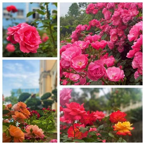 在这春末的季节里,校园里的蔷薇和月季次第盛开,芳香四溢,沁人心脾。校园东区航空仓对面,花爬满墙,绿叶衬托鲜花,微风轻轻吹动,花儿向你点头,仿佛传递着夏天即将到来。人工智能学院前和行政楼花坛中的月季也不甘示弱,红似火、黄似锦、粉似霞,好像在与蔷薇争相媲美。今年的蔷薇月季在环艺师傅们的精心培育下,比往年开得更加茂盛,我们的校园在园丁们的打造下,一定会越来越美丽!