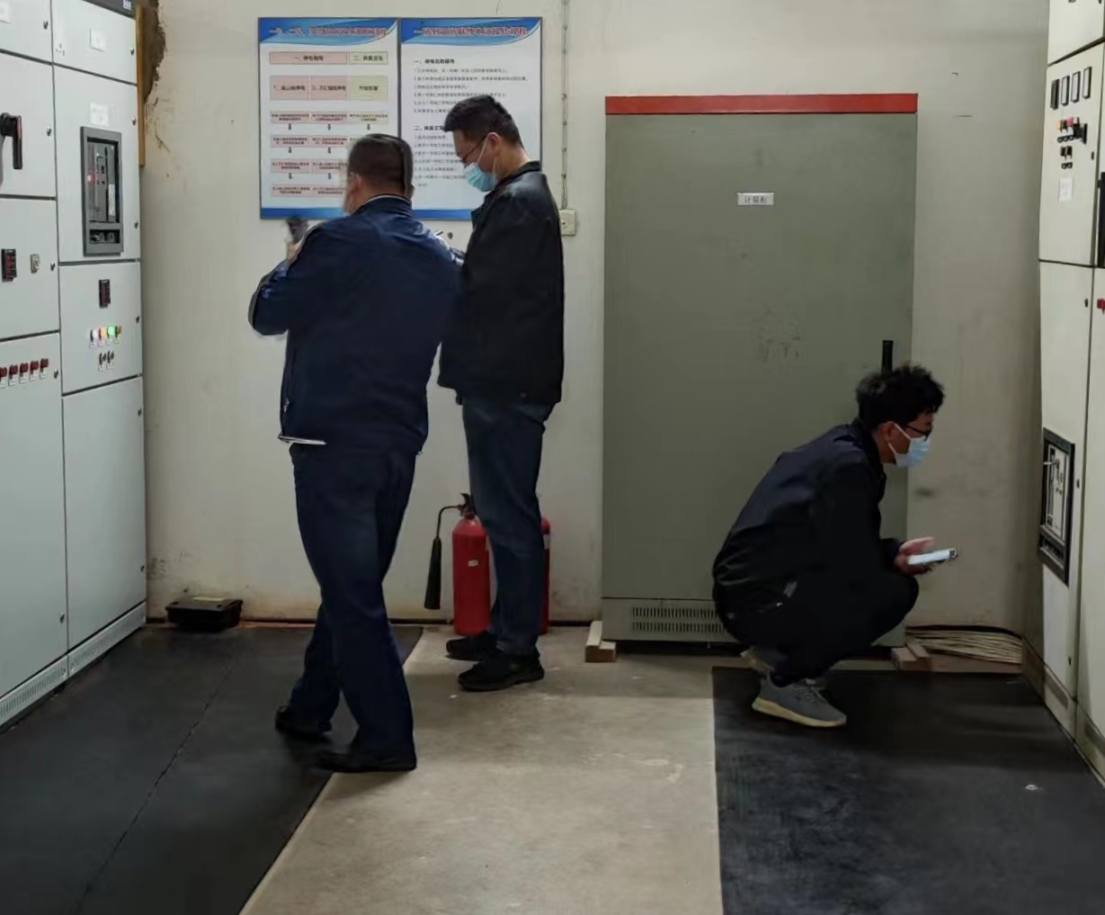 上午9时许,专家们来到第一配电房,首先听取了水电部朱道刚的口头汇报,对高压室内的高压供电设备进行了仔细检查。之后分别检查是否有线路图、线路图与设备是否相符,查看停送电的操作流程,观察高压设备使用情况,询问了该套设备使用了20年后,目前的运行状况等。随后来到低压室,检查了是否有停电应急预案、倒闸操作流程、两路电源之间的互锁是否正常、发电机保养状况等等。