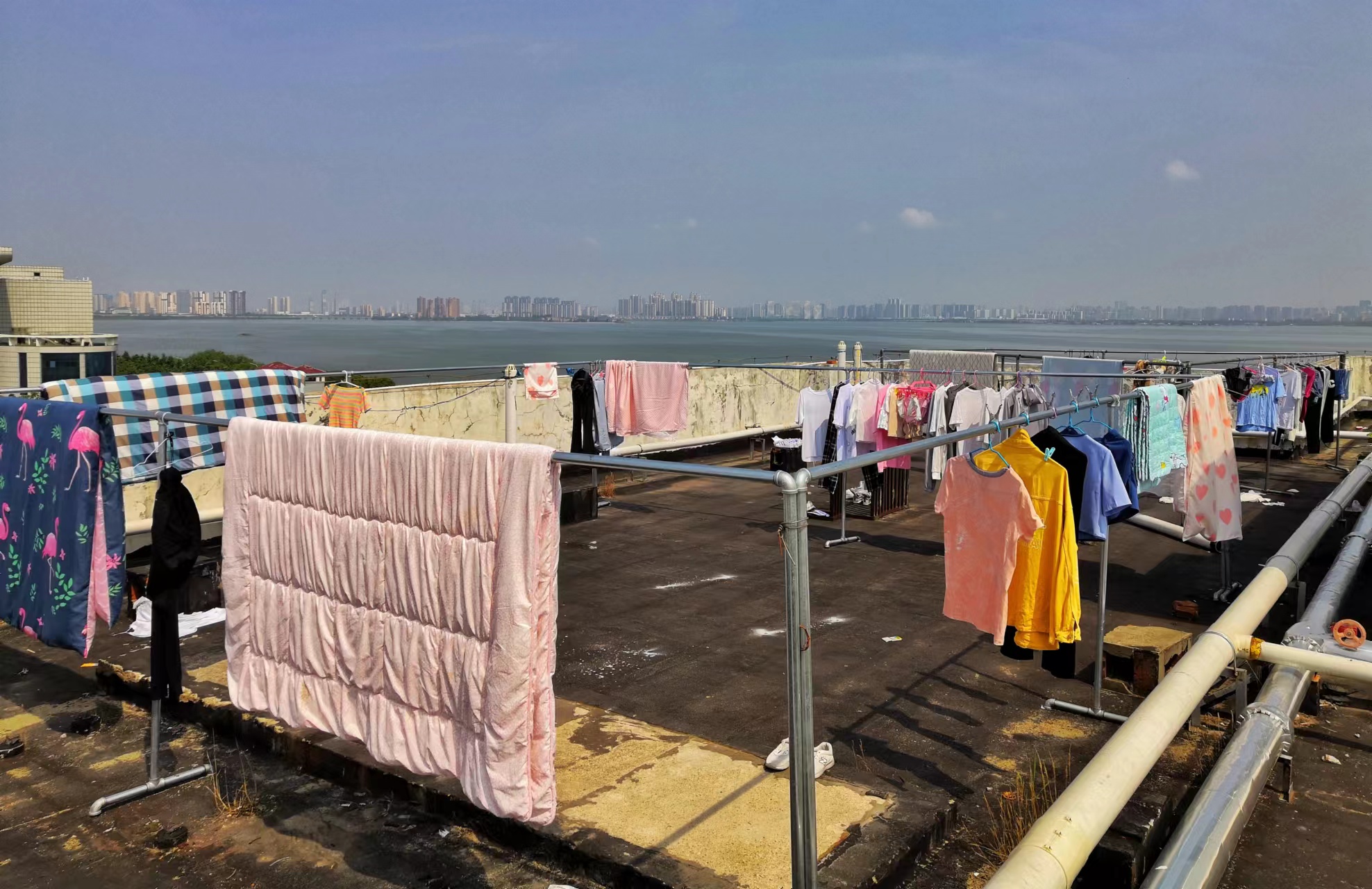 因地面场地所限,学生宿舍周边的晒衣杆数量不够,学生晾晒衣物很不方便。2021年暑假期间,宿舍屋顶的热水机组和太阳能板拆除后,正好可以利用这片空间,为学生解决晒衣难的问题。后勤服务中心水电部泥木班接到任务后,按照楼栋管理部要求,设计出晒衣杆的形状和尺寸,并做出材料预算,由楼管部报招标办批准后,交由采购部采购。
