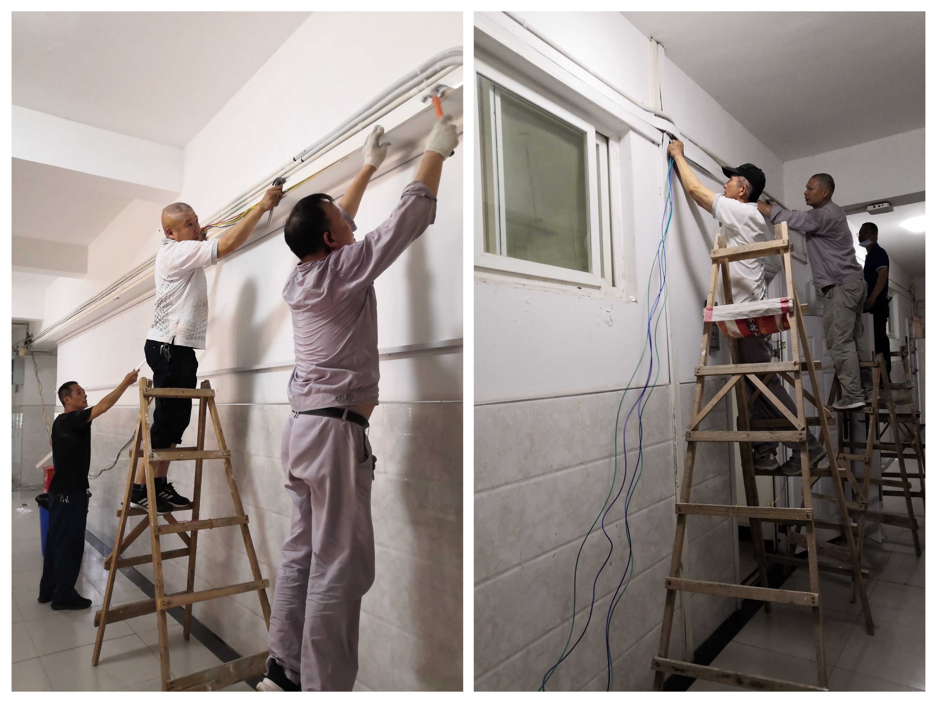 为此,水电部群策群力,大家广开思路,探讨出一套安装流程:即先易后难、先装没课的教室,最后再啃下硬骨头。