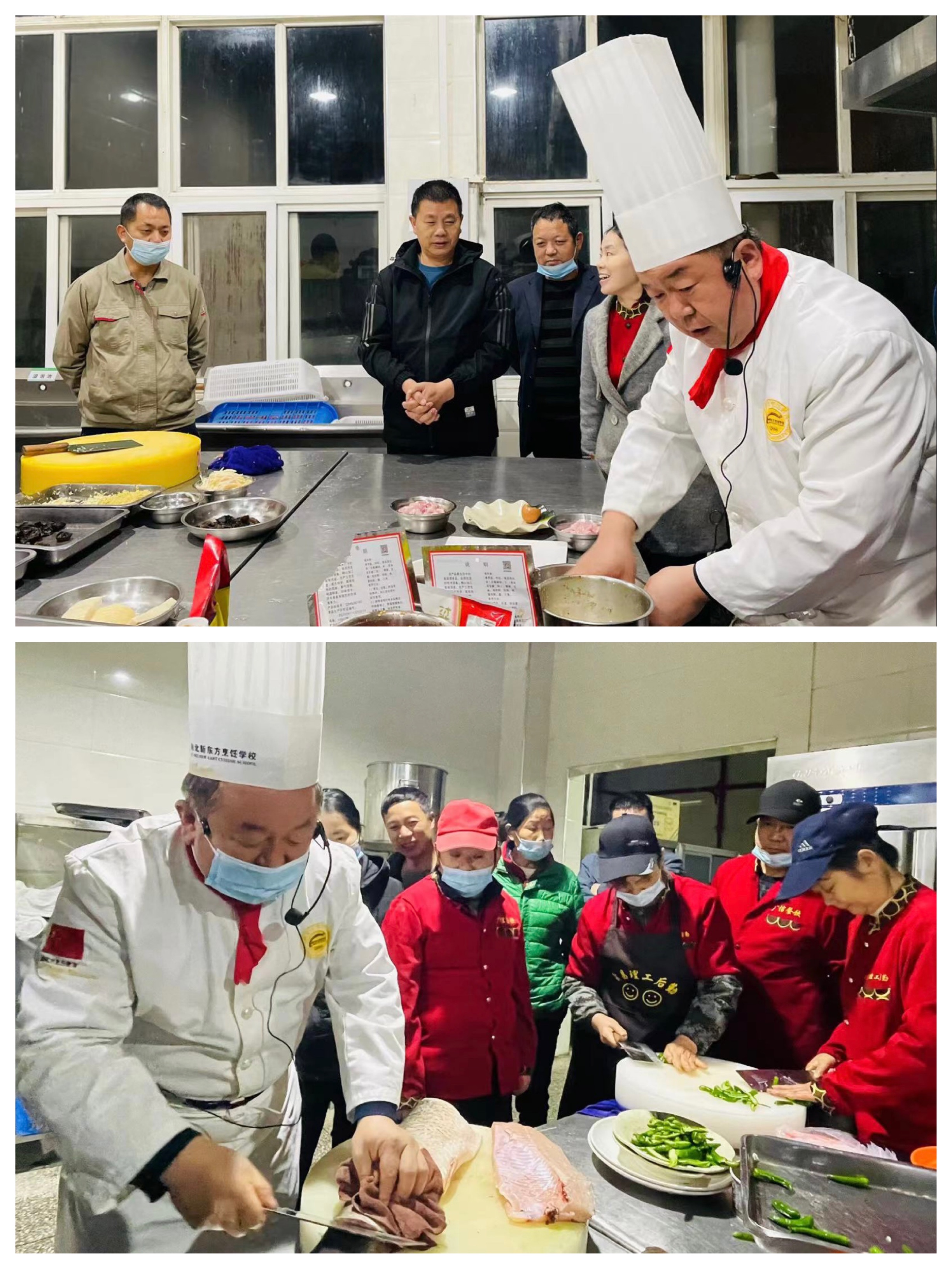 为了更好的提高食堂菜品质量,后勤服务中心饮食部3月份特邀新东方烹饪学校特级烹饪大师张涛先生对我校食堂的厨师、配菜师、蒸菜师傅等技术人员进行了三期的烹饪技术的培训。培训内容主要分为:菜品配色及菜品的配比、川湘菜肴烹饪技巧,家常菜肴烹饪技巧等培训。