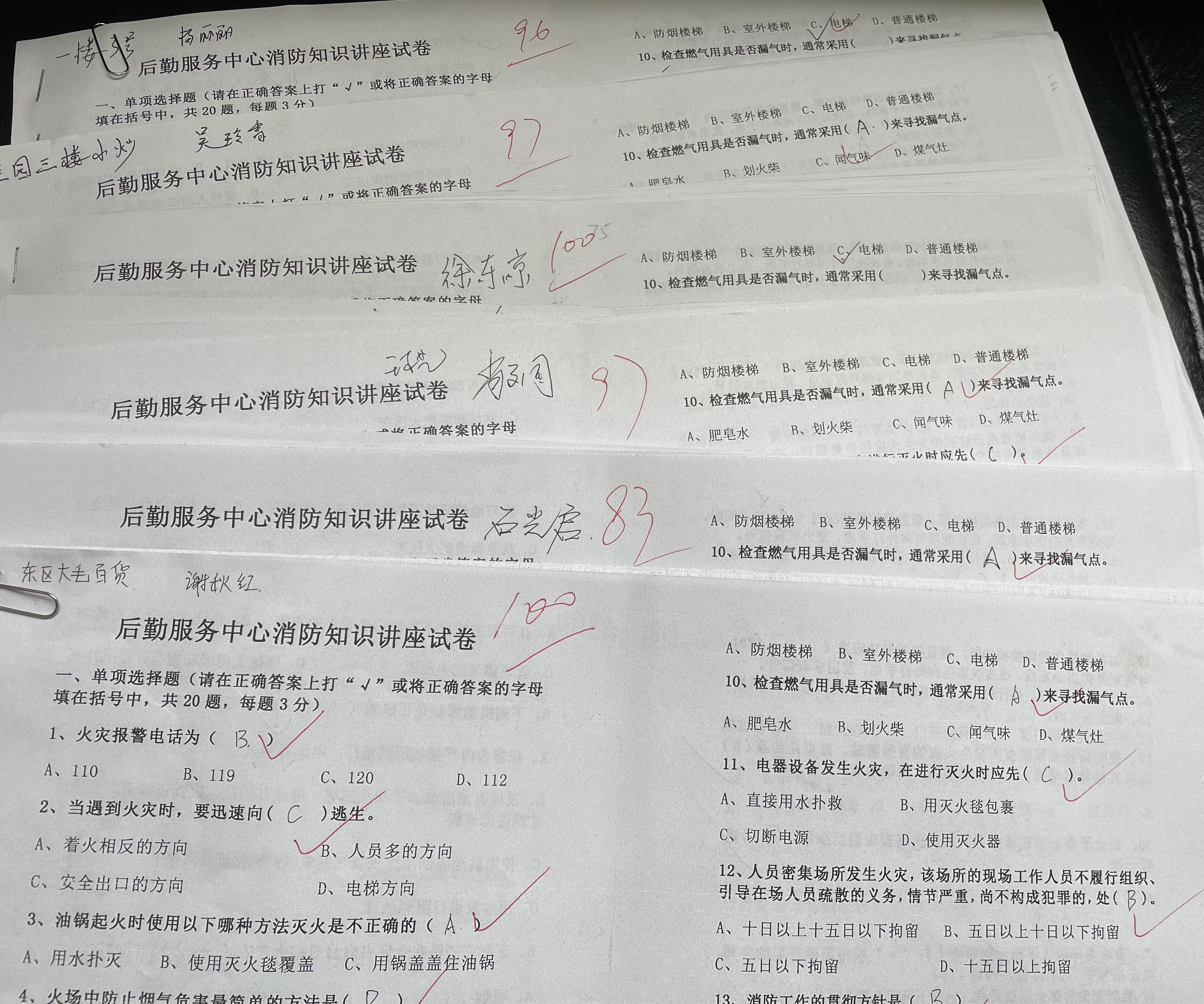 此次安全知识考试紧扣后勤服务工作实际,结合校园综合治理要求,涵盖日常服务工作中常见的用电用火安全,各类预防和应急处置方法。
