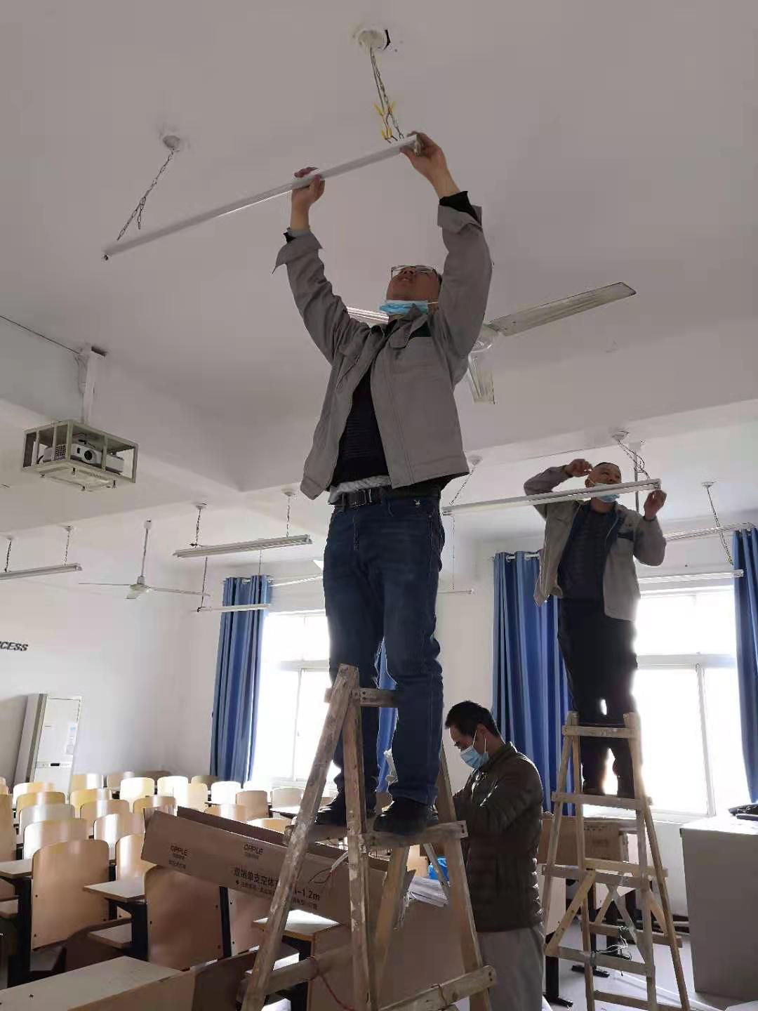 本次灯具改造任务工作量大,时间紧,因施工时间段受限制,无法连续性完成。水电部全体员工在保障水电维修工作不受影响的同时,克服重重困难,合理安排时间,与学院的教学活动打时间差。在施工时间段内努力提高工作效率,争取圆满完成此次改造任务。(通讯员 朱道刚)