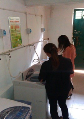 本网讯(通讯员 陈金凤 报道)“投币1至5元,半小时后轻松拿衣走人。自助洗衣不仅省钱,也节约时间,很方便”。同学们如此评价学校的自助洗衣机。日前,由后勤公司引进的学生公寓自助洗衣机,自投入使用以来受广大学生欢迎。 “先投币,打开洗衣机盖,放入适量洗衣粉,然后再盖上机盖,即可进行洗涤……” 。在每栋楼内,楼梯间靠墙边并排放置了4至6台自助洗衣机,每台洗衣机上都贴着一张《洗衣流程》操作指南。 武昌理工学院学生宿舍自助洗衣机的引进,完善了校内服务设施,为学生提供快捷的洗衣便利。