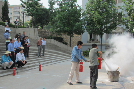 消防知识培训分理论知识培训、现场考试、实地演练三个部分展开。朱科长首先以幻灯片形式,深入浅出地对消防安全知识进行了宣讲。他结合近年来重特大火灾事故,认真剖析了火灾对国家和人民财产安全带来的巨大损失,通过直观的感受,使全体职工从思想上认识到防火的重要性;同时,他给职工讲解了防范火患、扑救火患、逃生和自救的基本方法,及灭火器的结构、原理、分类、使用方法和注意事项等知识。